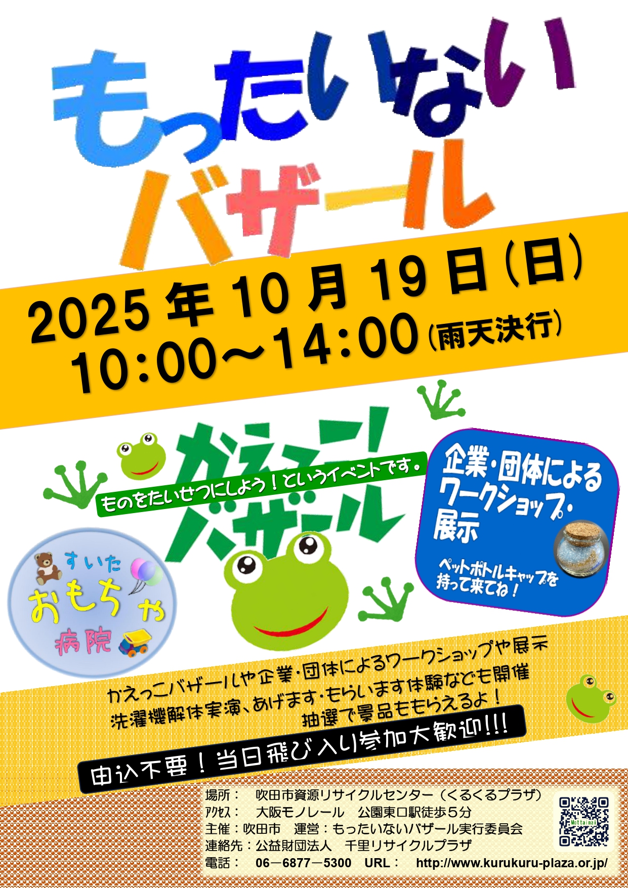 10月19日(日)開催 「吹田市もったいないバザール」に参加します。